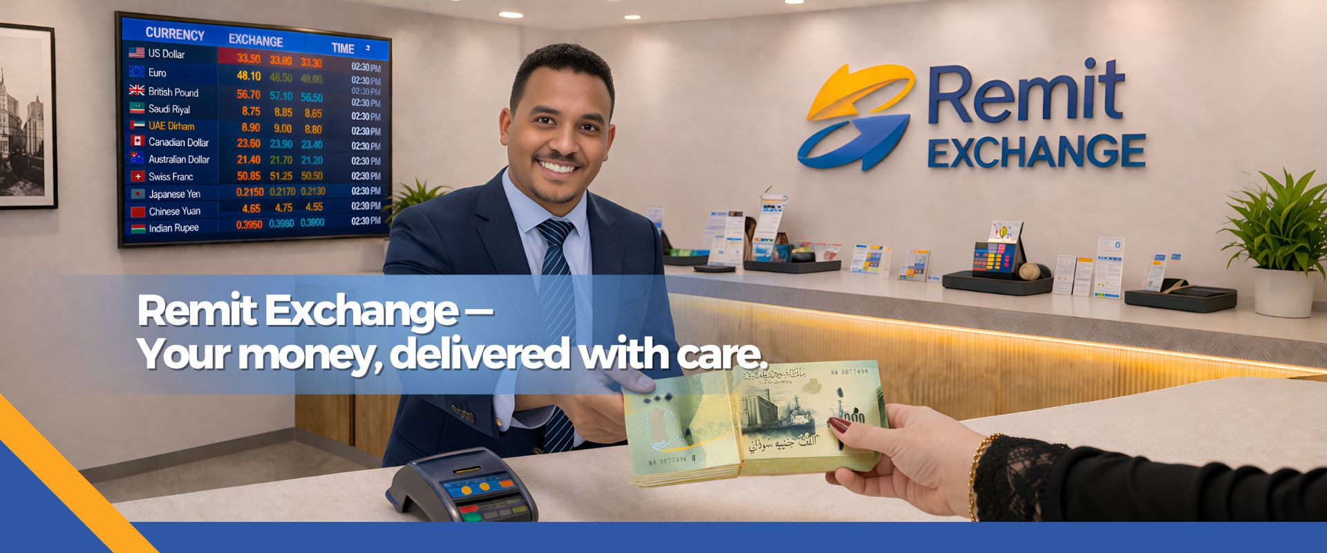 We offer competitive rates for foreign exchange and money remittance